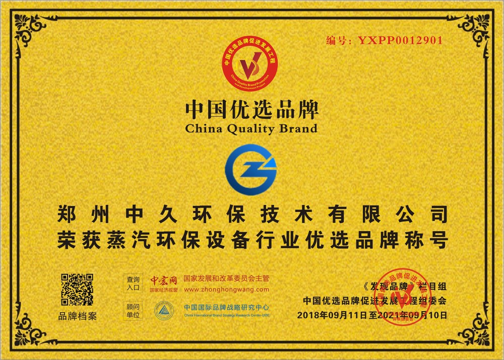 中久環(huán)保榮獲CCTV中國優(yōu)選品牌榮譽牌匾